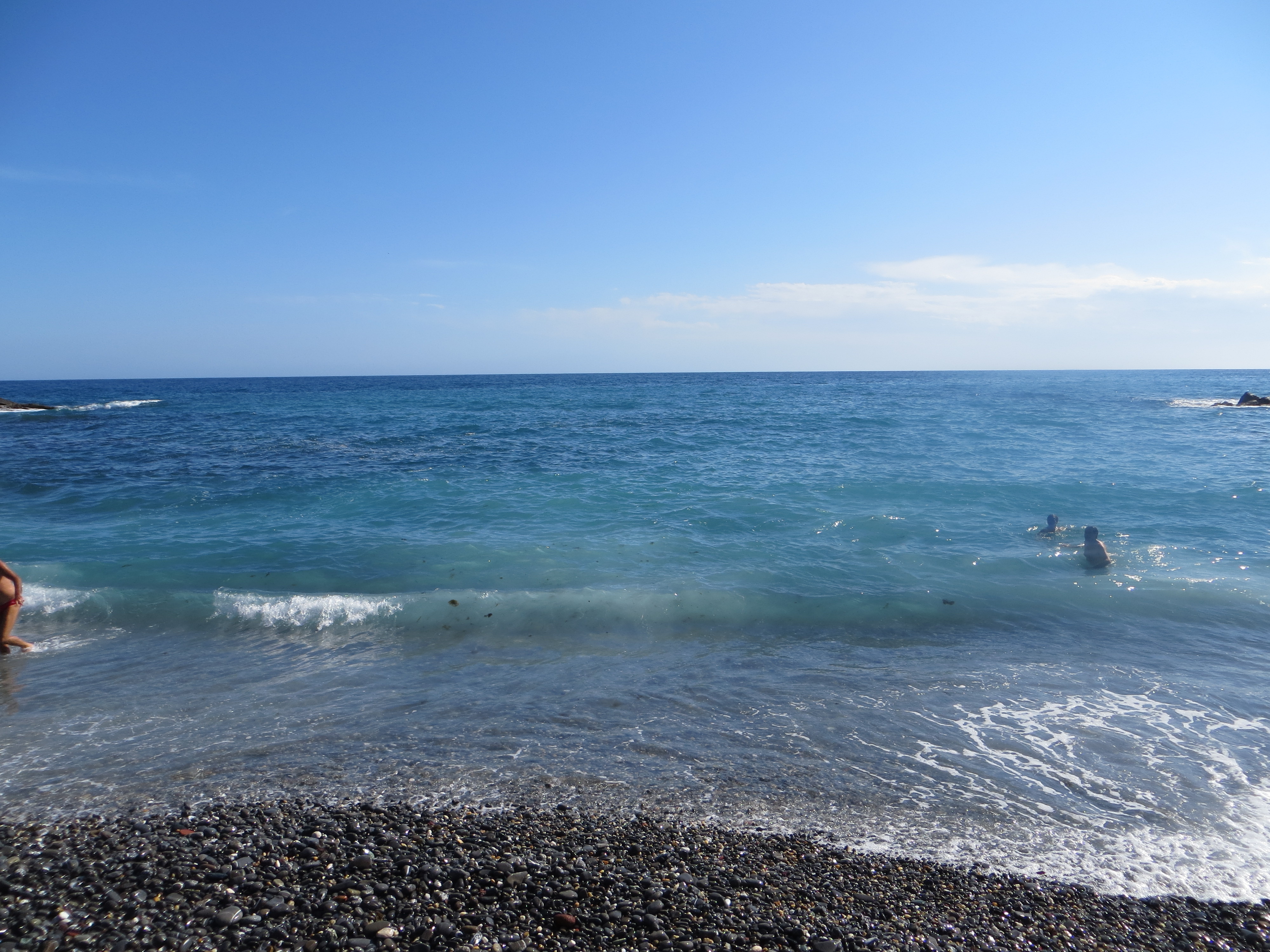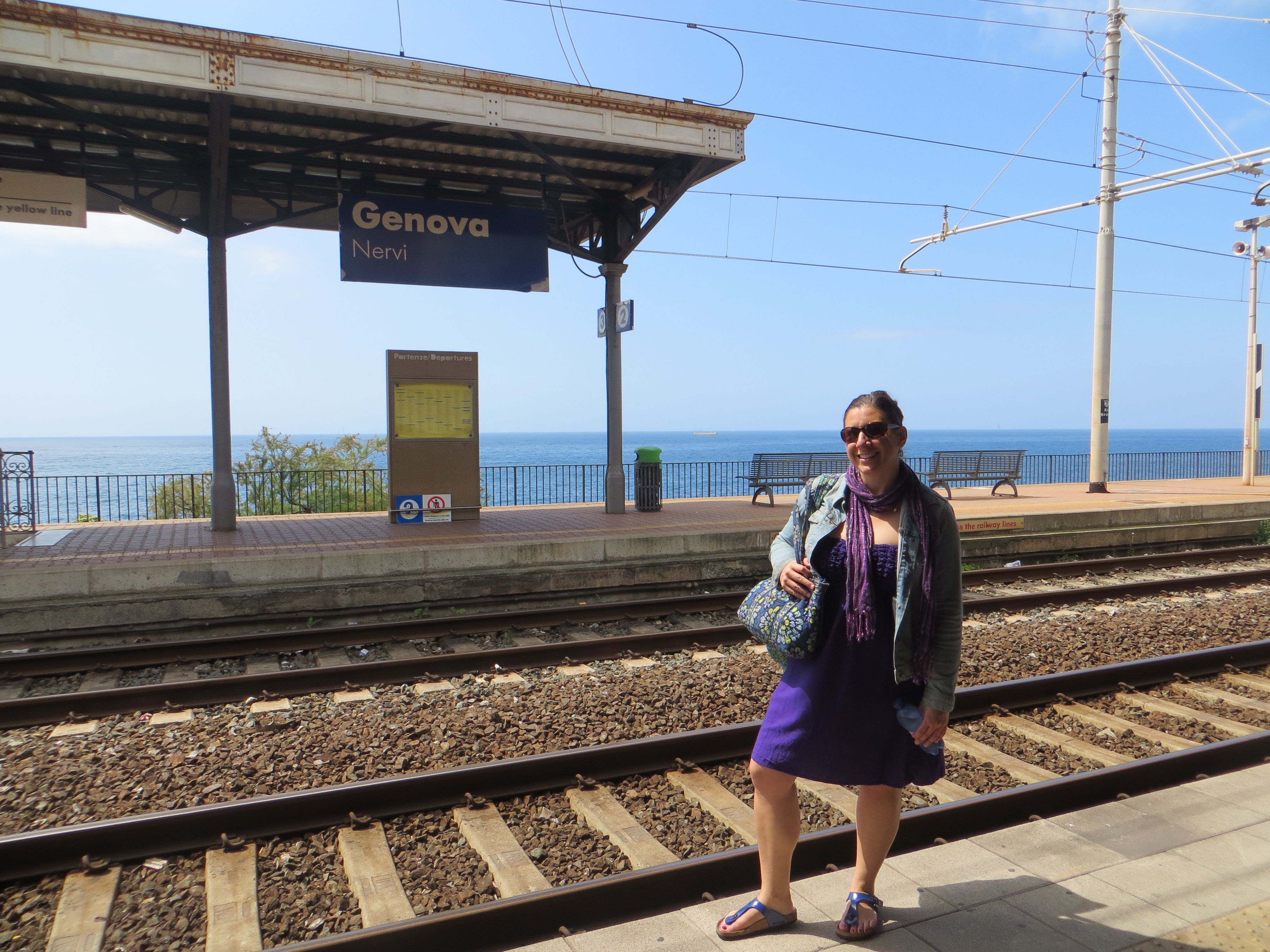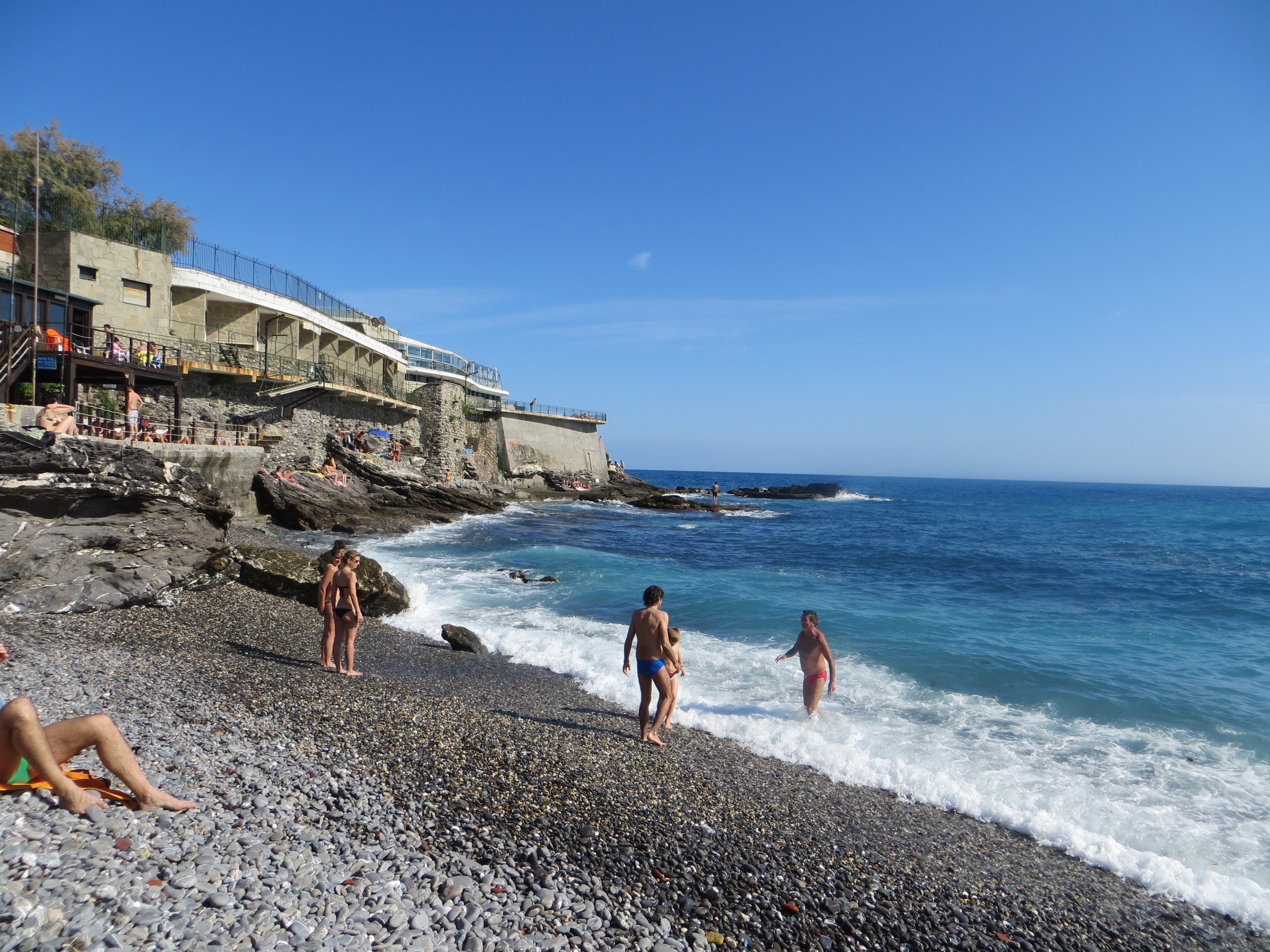 After a Siren photoshoot, we boarded the train for Genoa, where it was finally swimming weather. We enjoyed a couple of hours on my local beach before dinner.